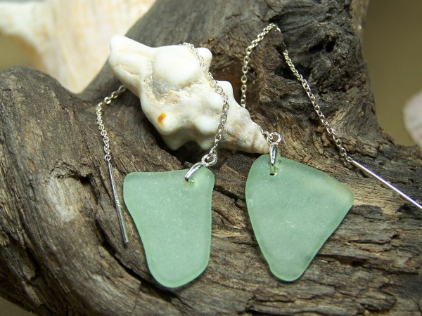 seafoam beachglass with sterling threader earrings