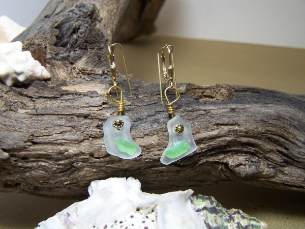White and green beachglass with goldfilled leaverbacks