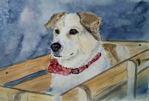Adorable Corgie riding proudly in his wagon, sporting his red bandana. Met this fellow at the 2016 Covered Bridge Festival in Park County Indiana.